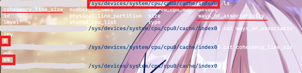 通过读取 coherency_line_size 文件,获得了 Cache Line Size 为 64B。