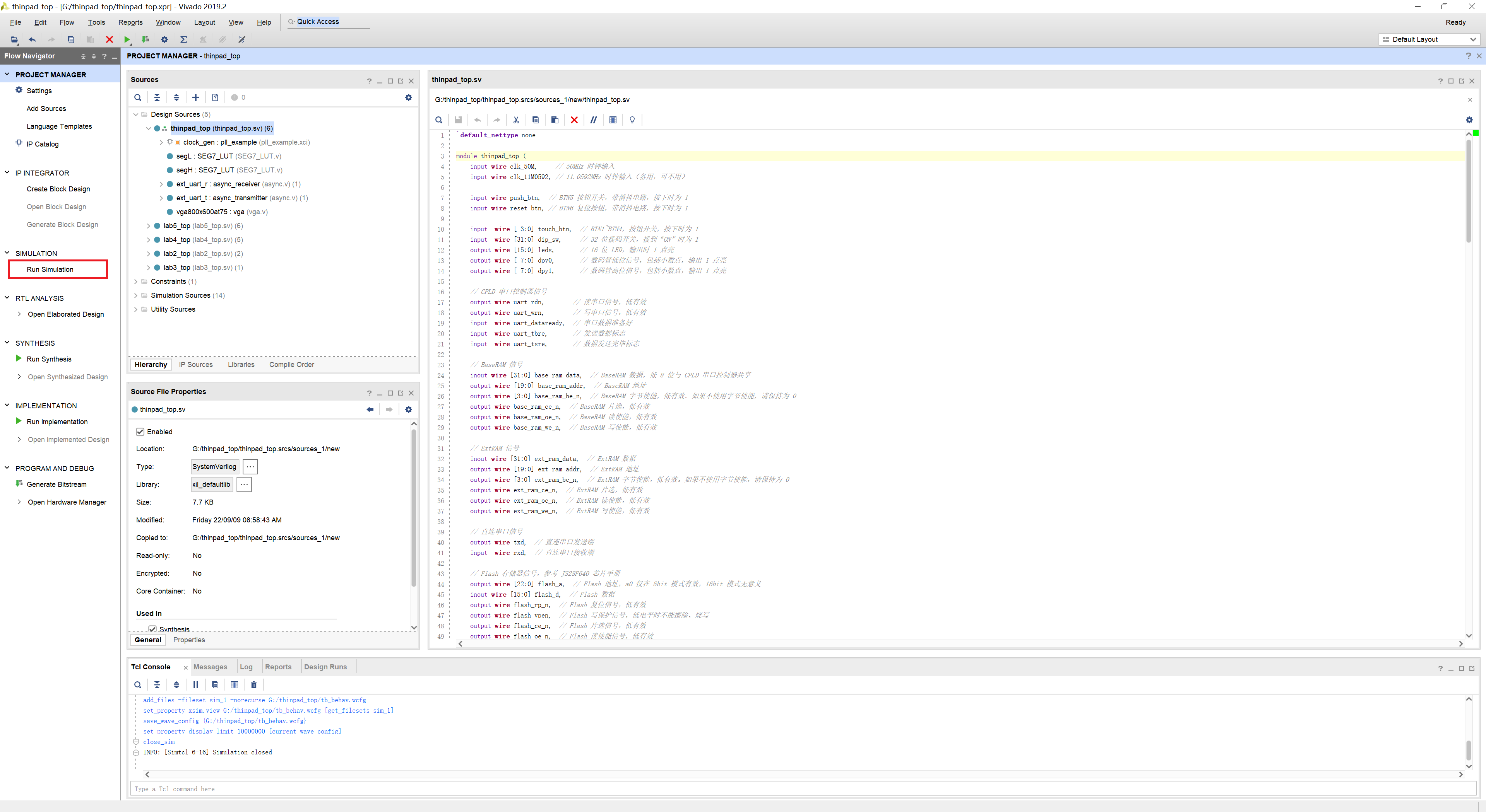 thinpad_top 项目中的仿真代码