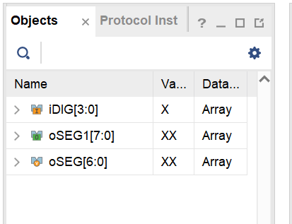 上面的箭头指示了把信号加入到波形窗口中。下面的箭头指示对应信号的值是以什么样进制显示,可以二进制,十进制,十六进制等。
